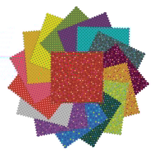 The Charm Pack includes 42 - 5 inch squares of Dazzle Dots prints by Christa Watson. It includes 1-2 squares of every print from the line.
